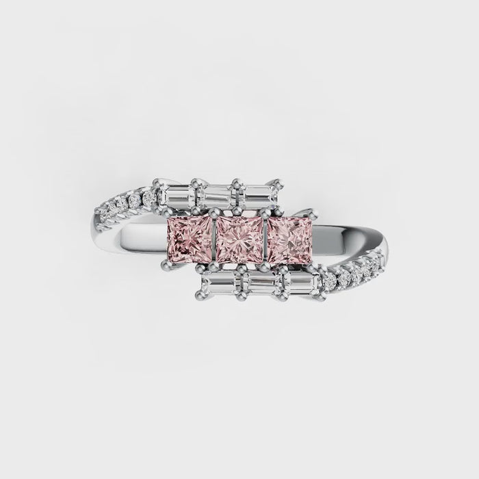 14K Gold Pink Morganite & Diamond Ring (Princess Cut Trio Design)